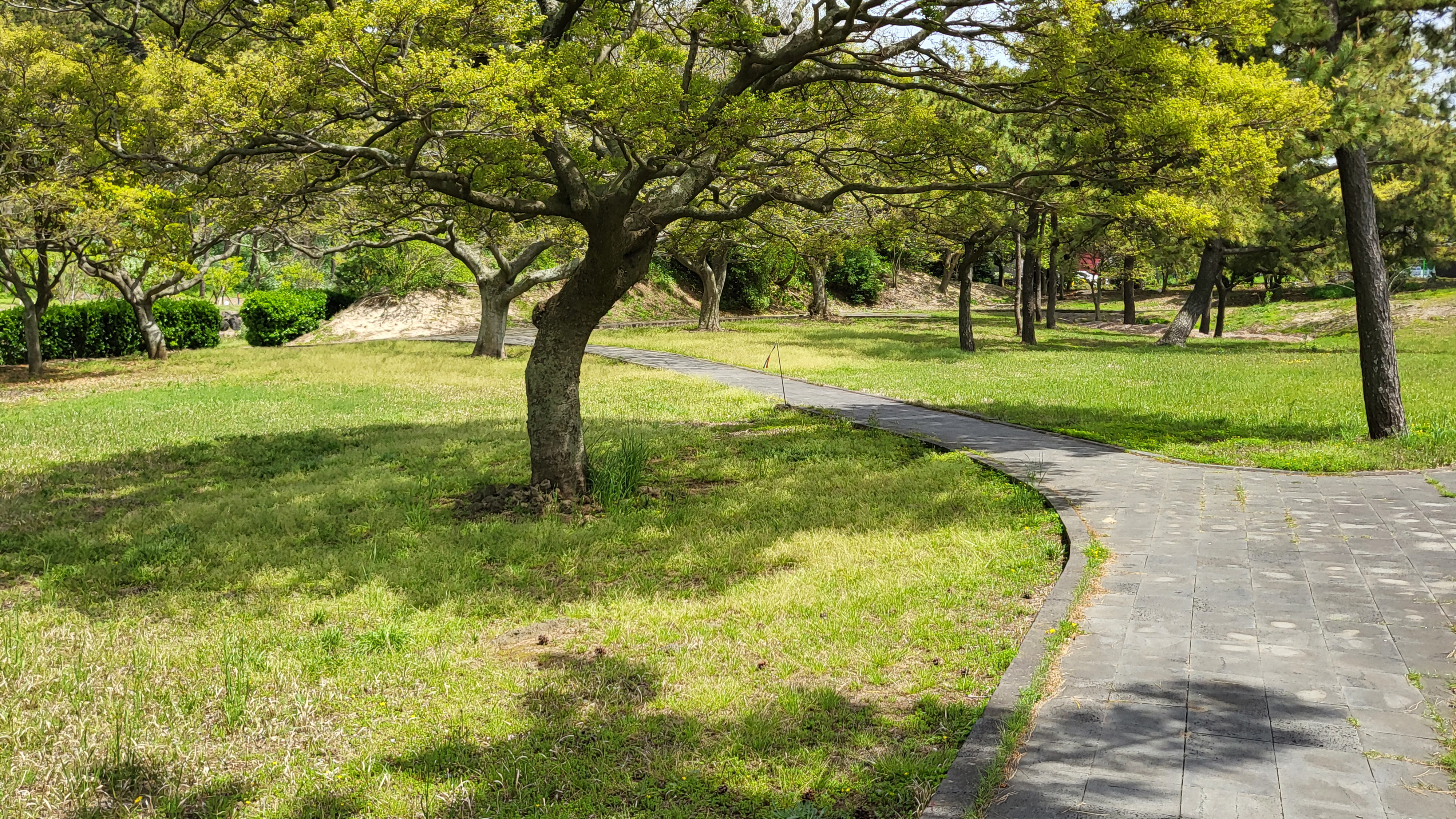 공원 오른쪽을 돌아 낮은 언덕을 넘어서서 면수동 마을회관으로 길이 이어진다