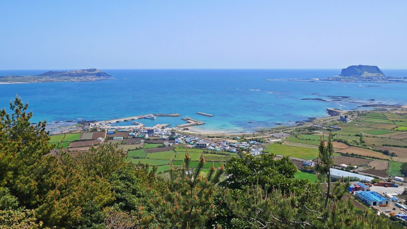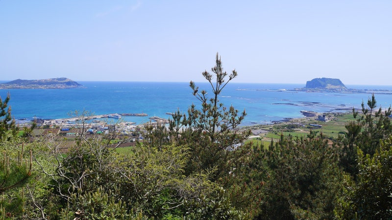지미봉 꼭대기에 섰을 때 어디 한곳 가린데 없이 360도 파노라마처럼 펼쳐지는 제주 풍경을 감상할 수 있다
