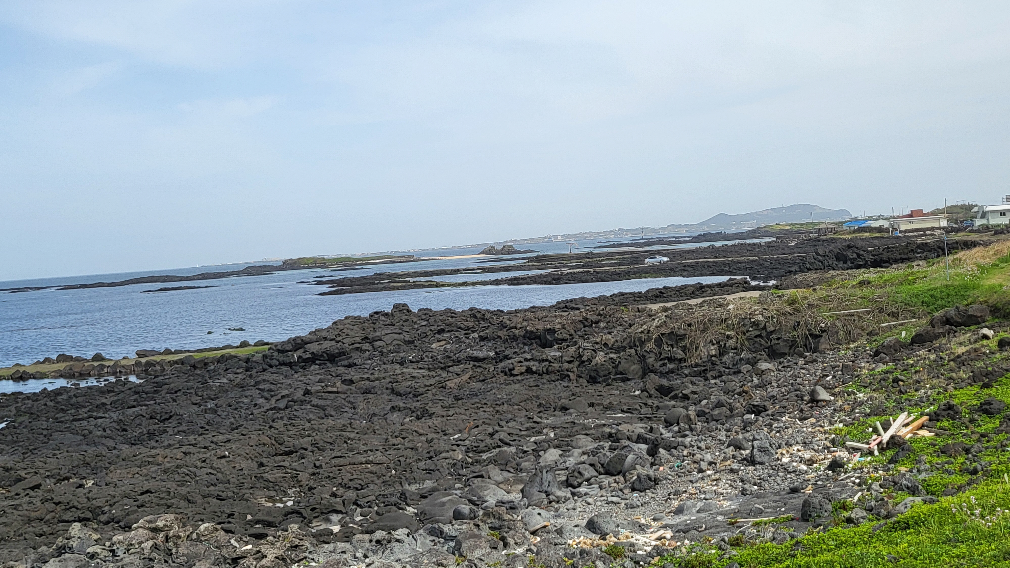 변함없이 자리를 지켜온 우도와 성산일출봉이 손에 닿을 듯 가까이 다가오고 검은 현무암 갯바위가 올레길21코스의 마지막을 지켜주고 있다
