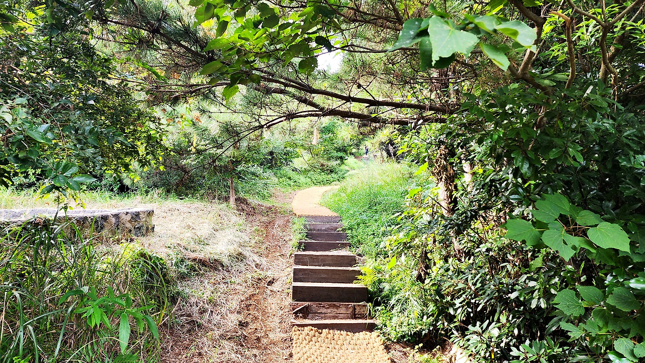 지미봉 계단을 오르자 마자 길은 숲의 그늘에 묻혀버린다. 서늘한 기운을 느끼며 적당히 힘든 길 20여분을 걷다보면 오름의 끝에 성산일출봉과 우도가 성큼 한눈에 들어오고 제주의 풍경이 파노라마처럼 일망무제로 펼쳐진다