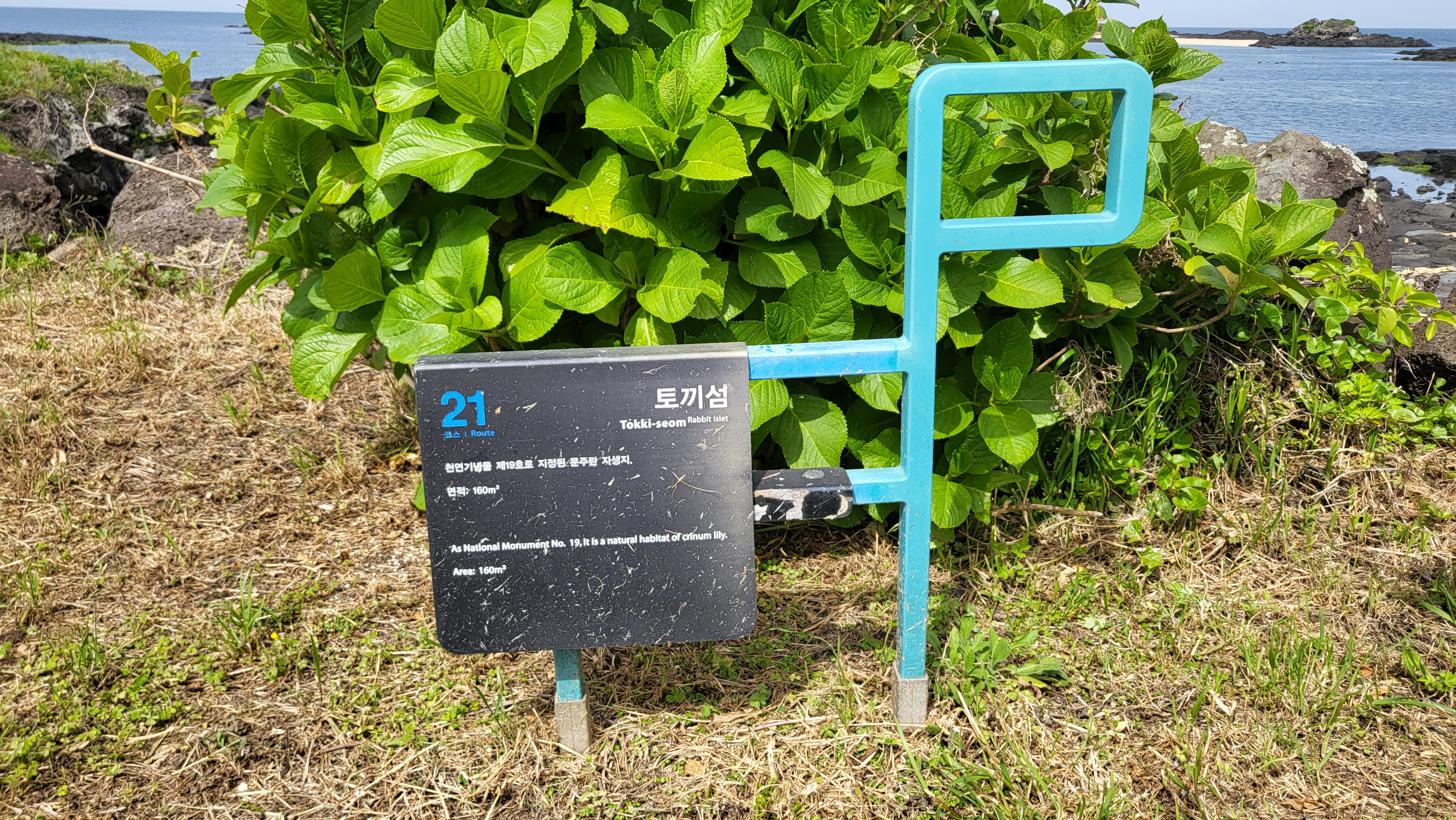 썰물때면 걸어서 들어갈 수 있는 ‘토끼섬’은 천연기념물 제 19호로 지정되어 보호받고 있으며 우리나라에서 유일하게 문주란이 자생하는 곳이다.
