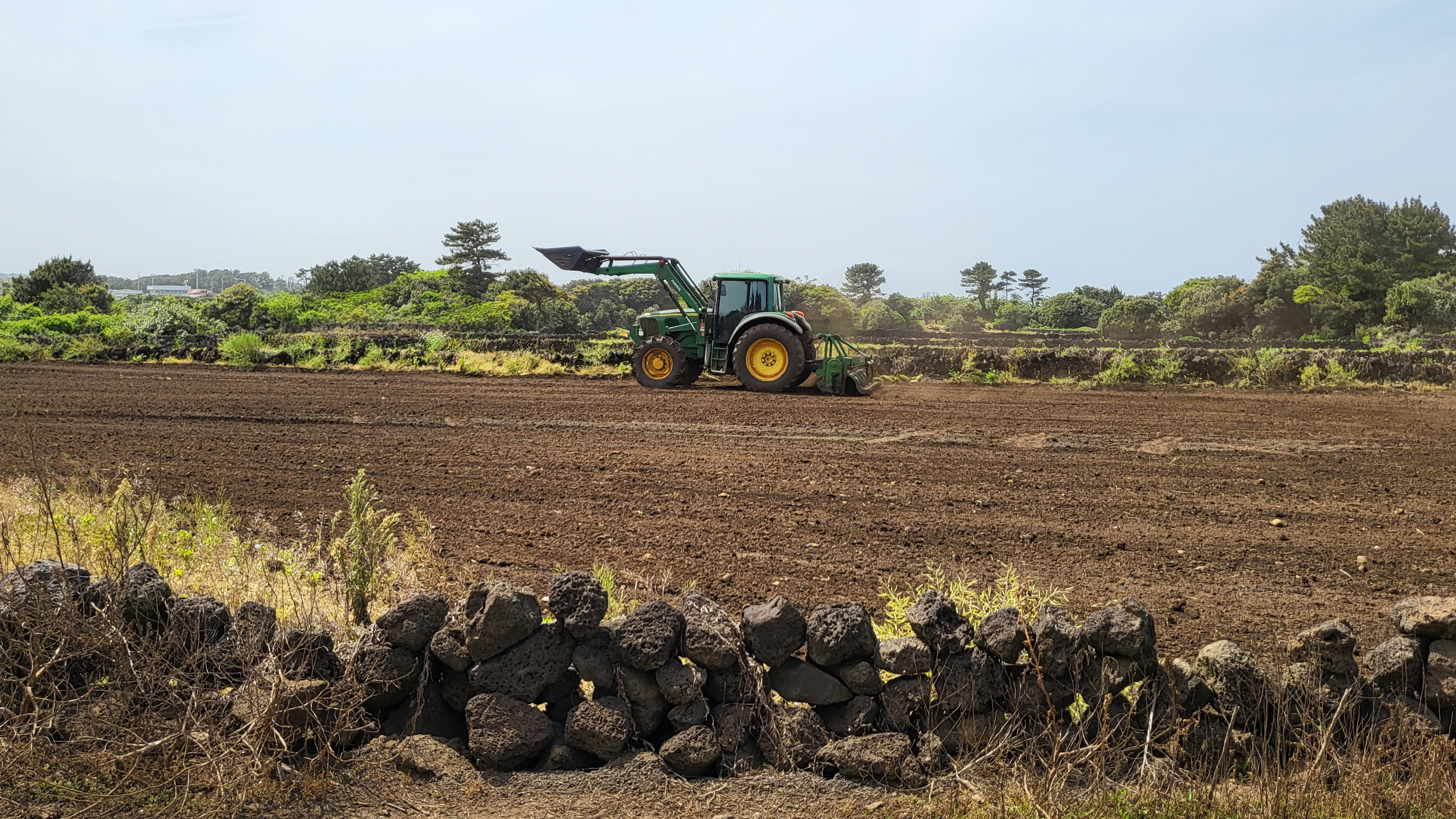 트랙터 굉음과 뽀얗게 날리는 흙먼지 너머로 별방진 담장이 보인다