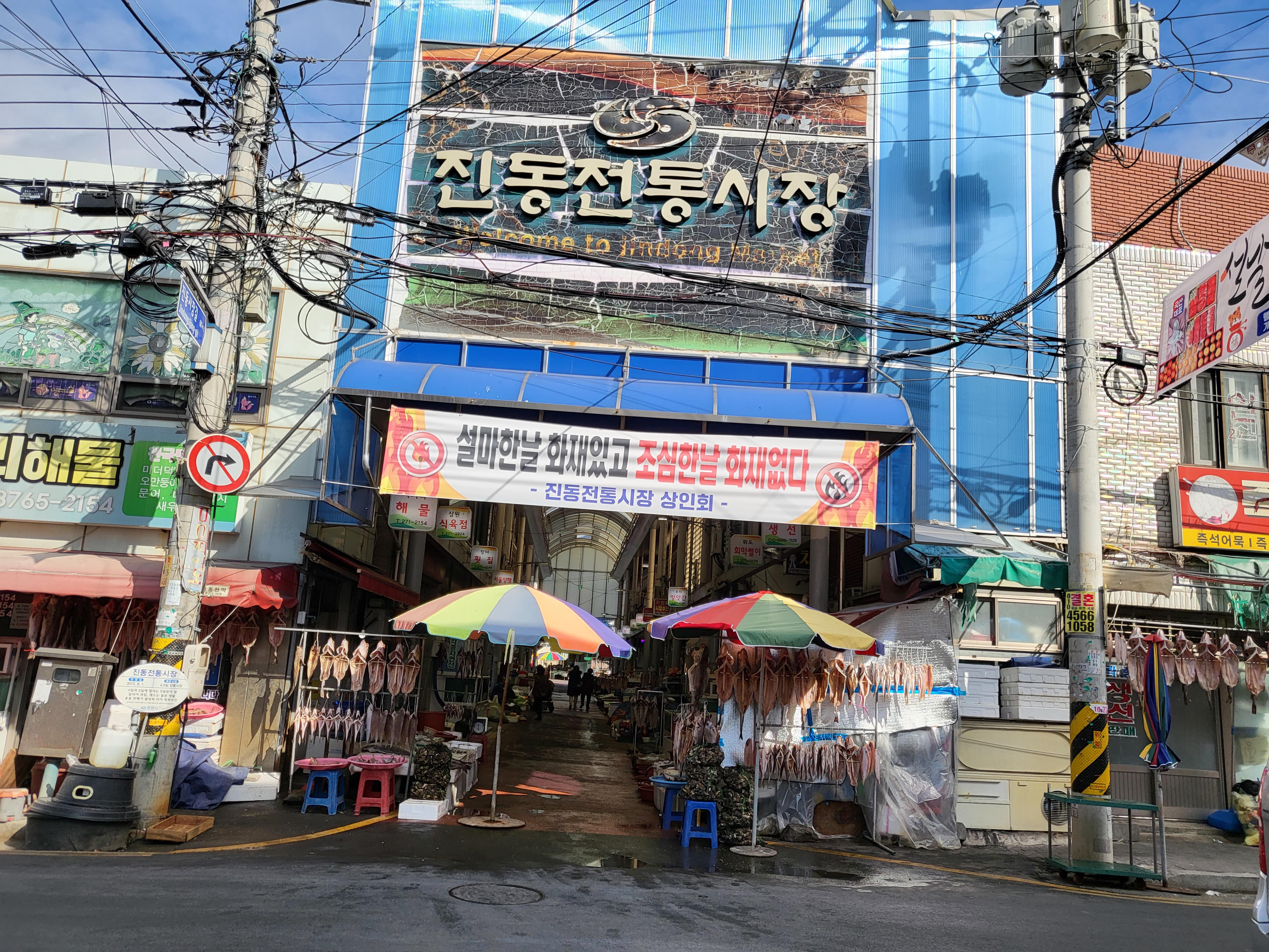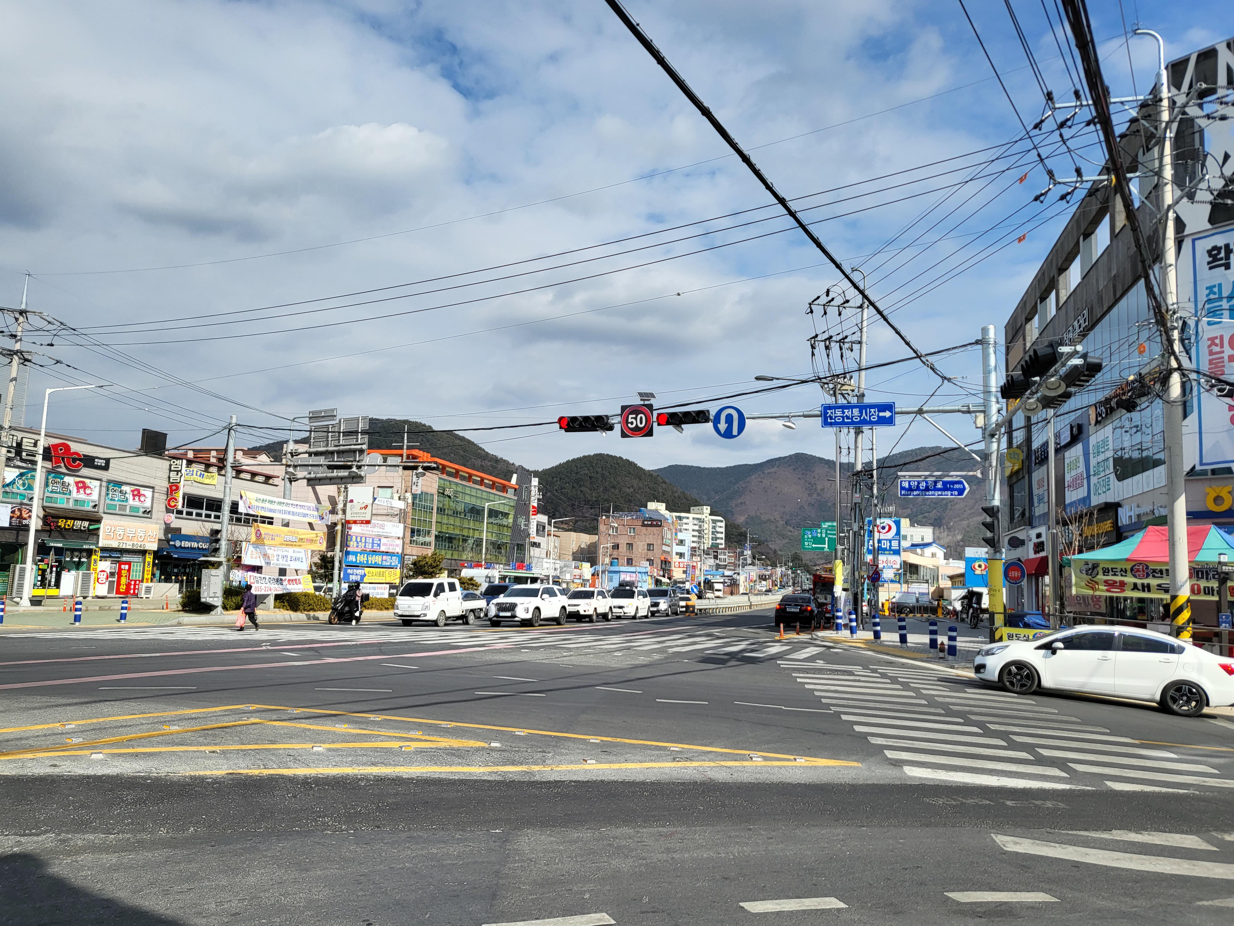 진동시내로 접어드니 제법 규모가 있는 진동 전통시장과 왕복 4차선 대로와 만났다.