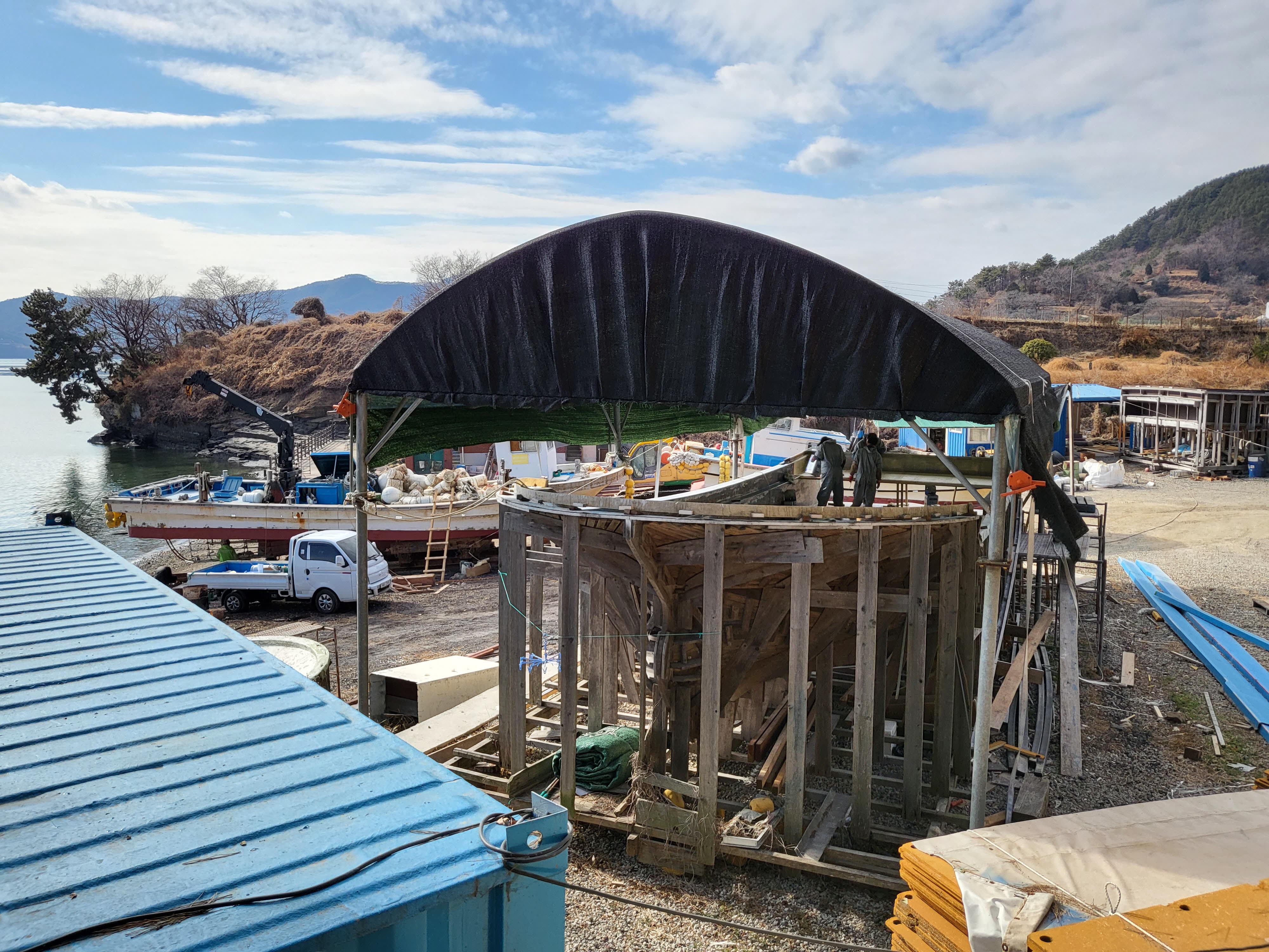 전통방식에 따라 선박을 건조하고 있다.