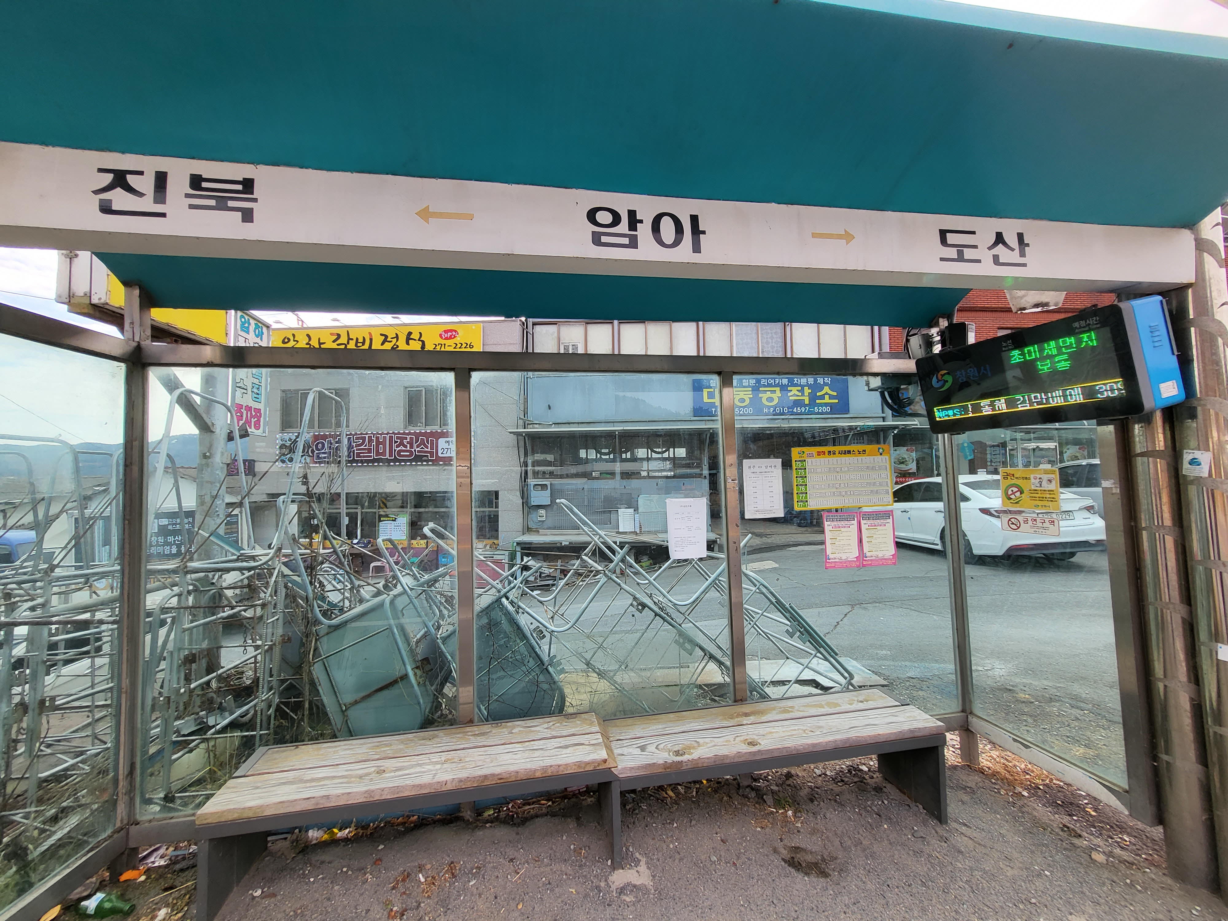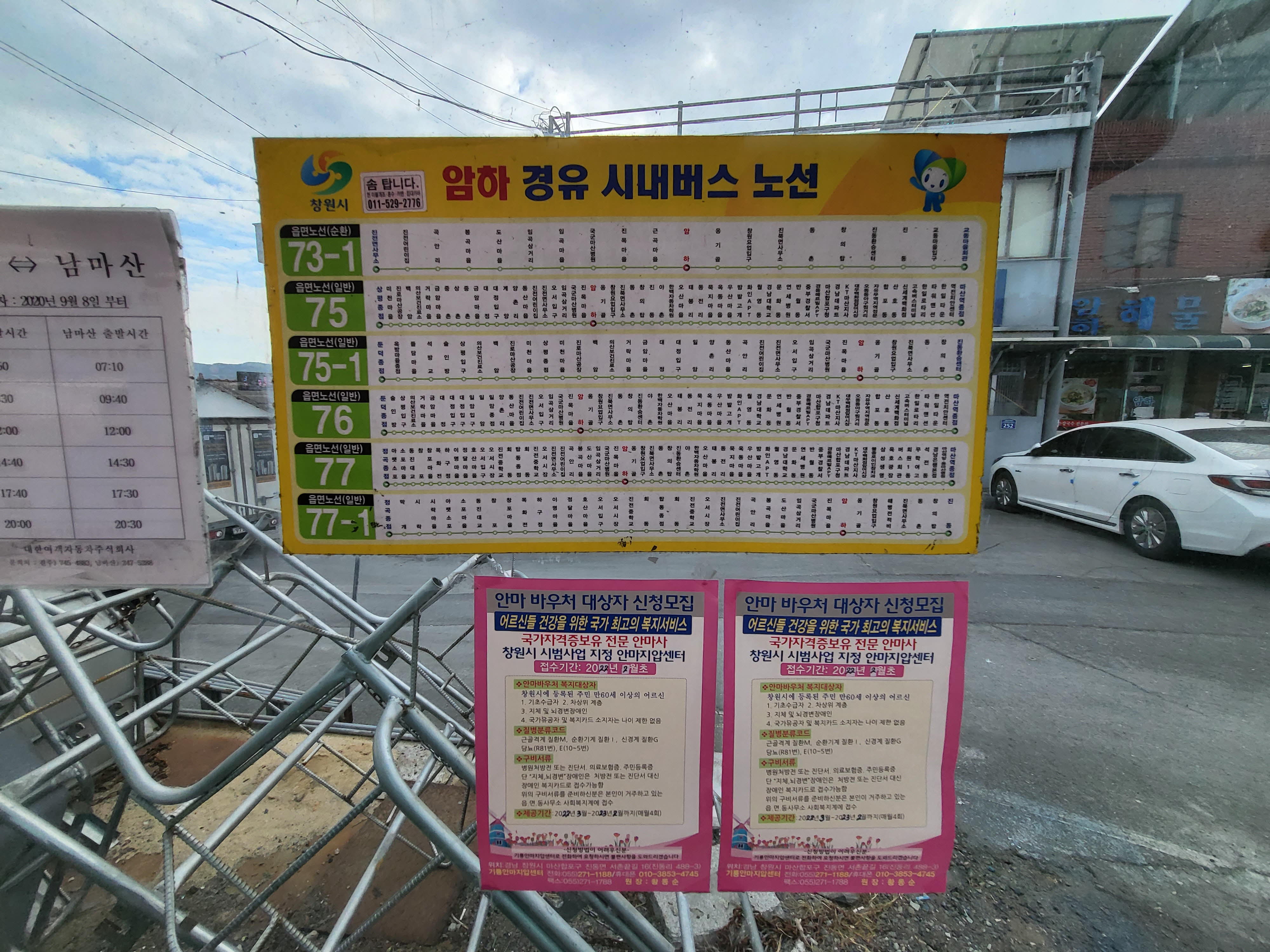 구서분교로 되돌아가기 위해 암아교차로에서 73-1번 버스를 타고 진동버스 환승장까지 이동후에 다시 64,65버스를 타고 가야한다.