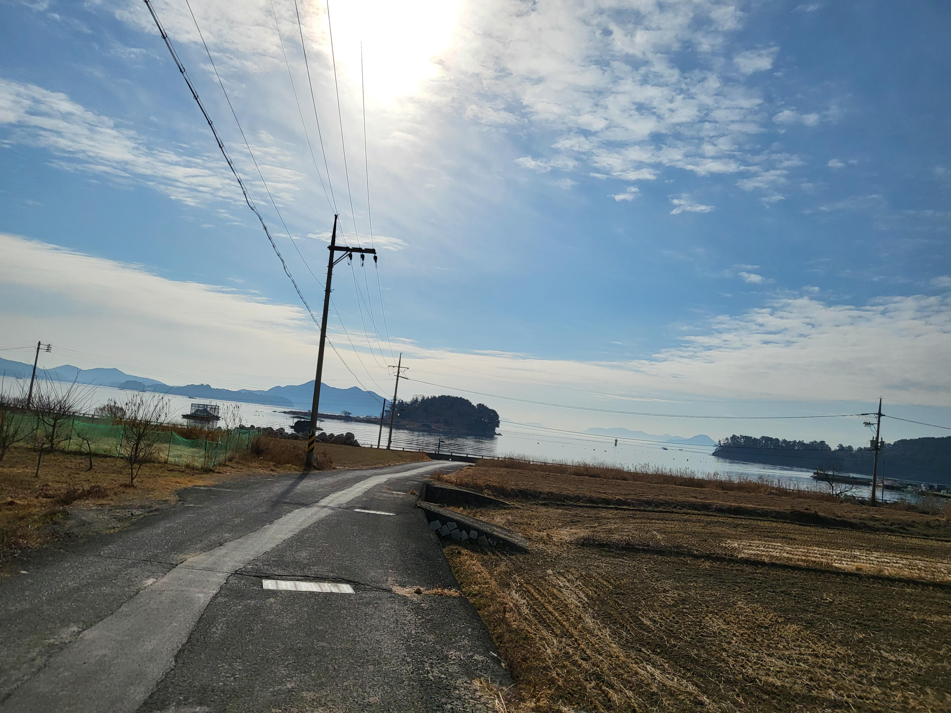 풍욕대를 지나면 바닷길로 이어진다. 전봇대가 세워진 길을 따라 바다가 길을 안내한다