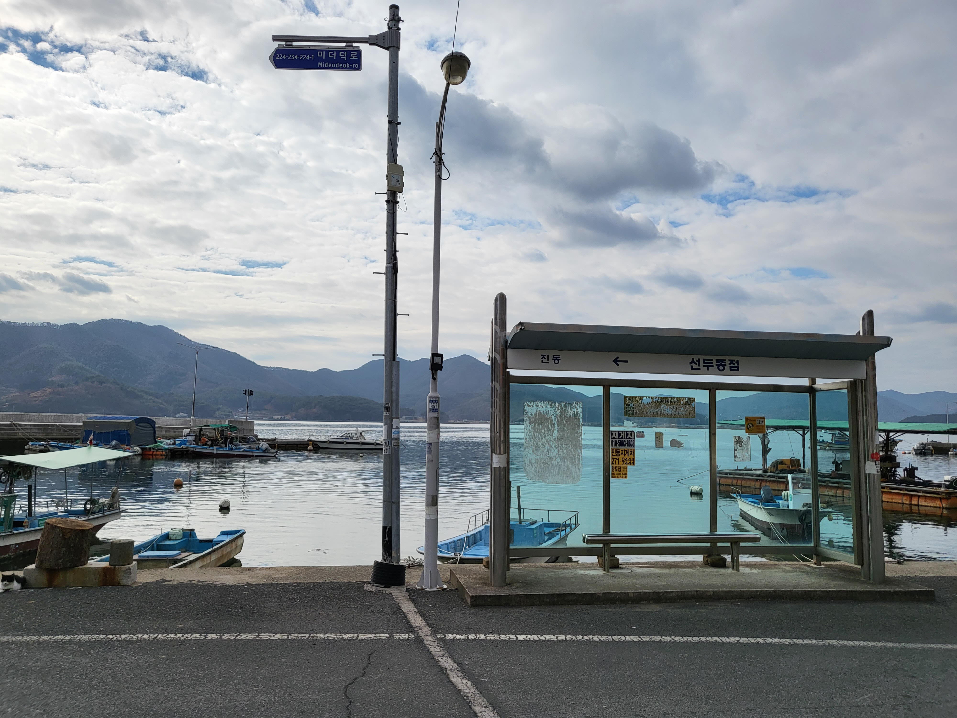 "진동 바다가 참 좋았지. 지금은 바다에 미덕덕과 오만둥이만 가득해". 예전에 고기를 잡고 살았다는 옆자리 할머니의 말씀에 "지금은 안잡혀요?" 하니 " 고기가 없어.. 근데 어디서 왔소" 한다. 부산에서 걸어서 왔다고 하니 "뭐하는 사람이요" 다시 묻는다. 사탕한줌 손에 쥐어 드리고 배낭을 매고 있는데 " 잘 먹을게요..고마버요" 하신다