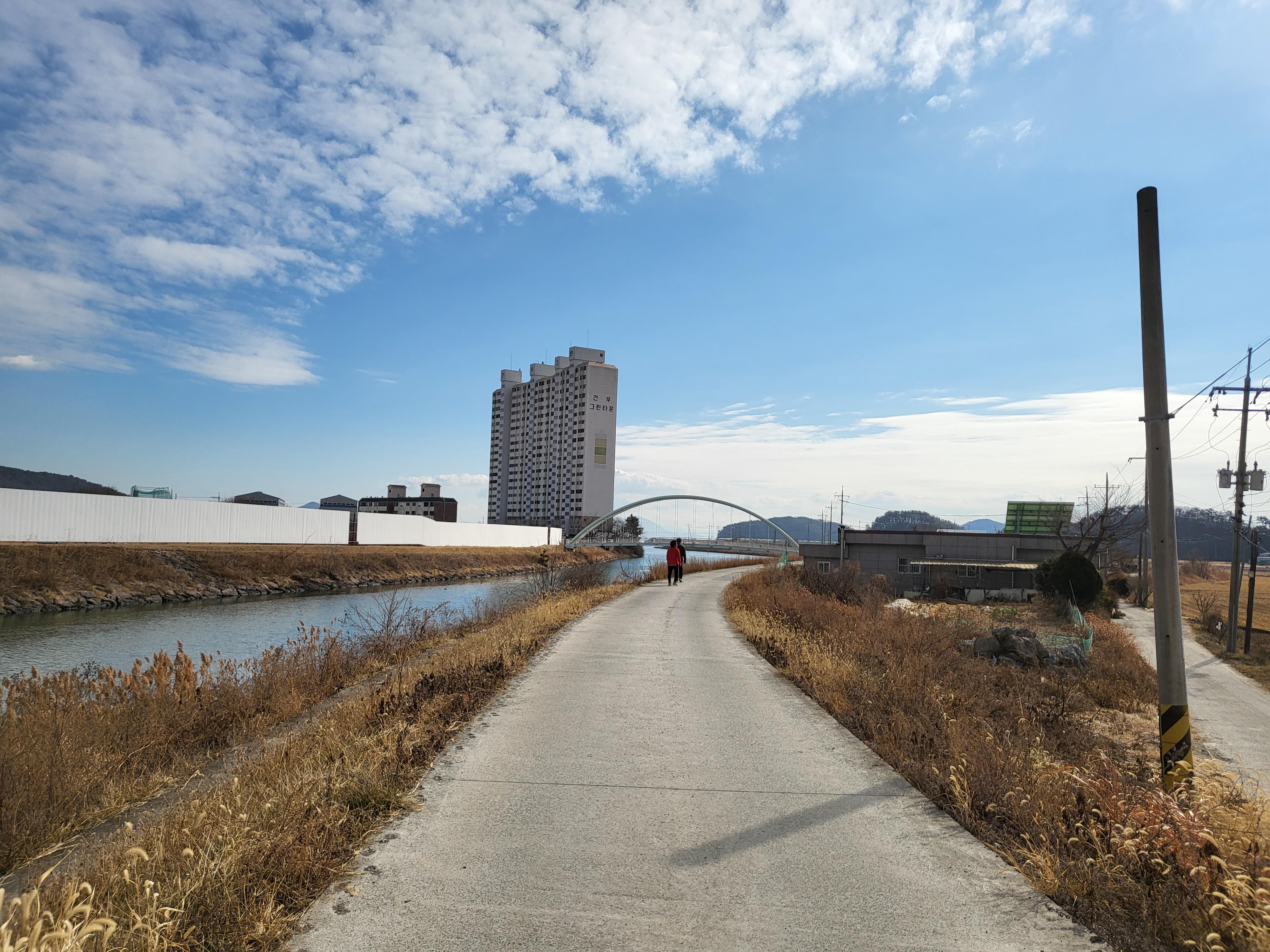 공장 폐자재가 놓여 있으나 이런 풍경을 보는 것은 작은 선물이다.