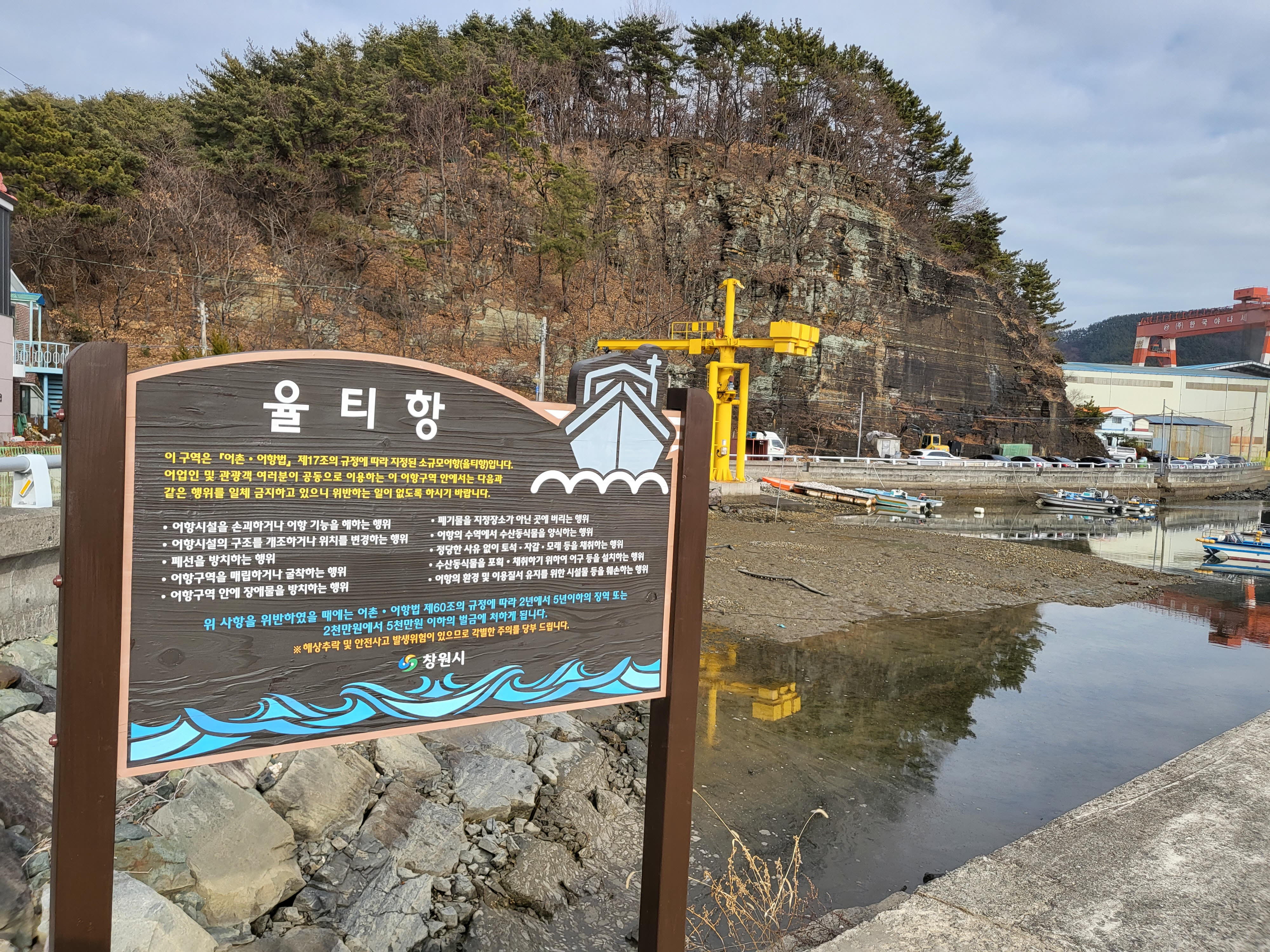 공장지대를 벗어나면 율티항앞에 버티고 선 거대 암벽을 만난다.