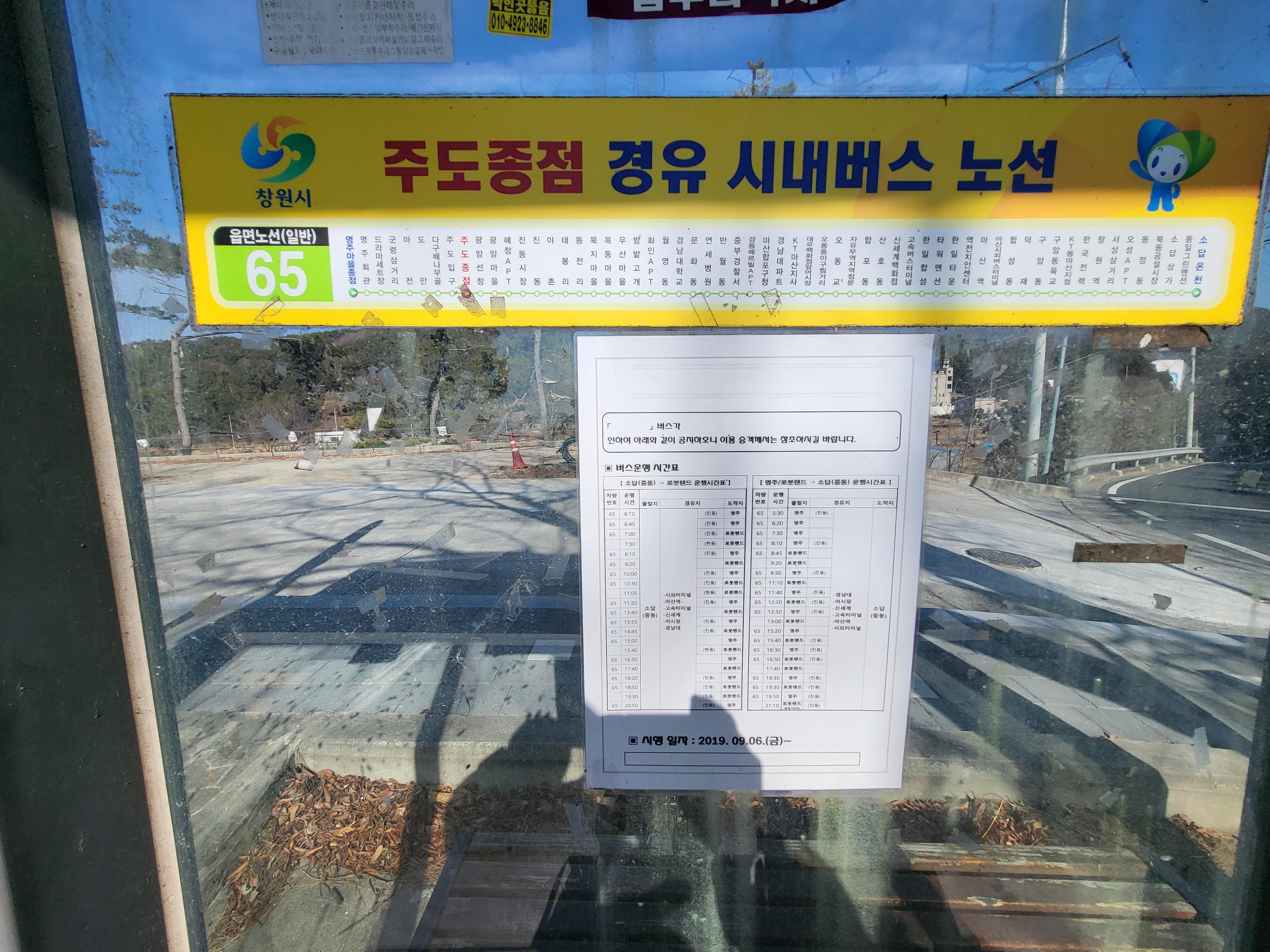 길여행객에게는 걷는 것 못지 않게 중요한 정보를 제공하는 버스 시간표.